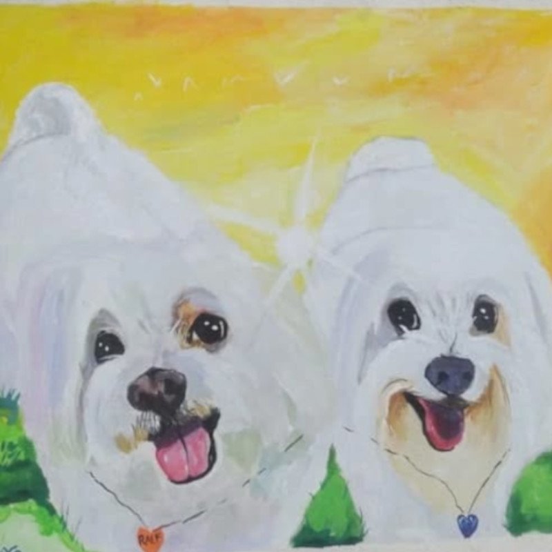 A tela com nossos cachorros ficou linda, refletindo a expressao de cada um deles! amamos! Obrigada Alberto!