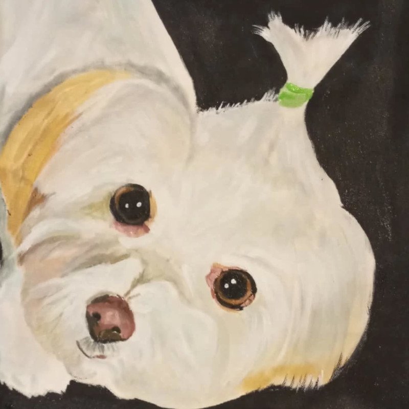 Adoro a pintura impressionistas, de movimentos rápidos, e me apaixonei por retratar animais de estimação. Nos quadros que faço, a cada pincelada, tento traduzir um pouco do amor que as pessoas tem pelos seus queridos pets!
